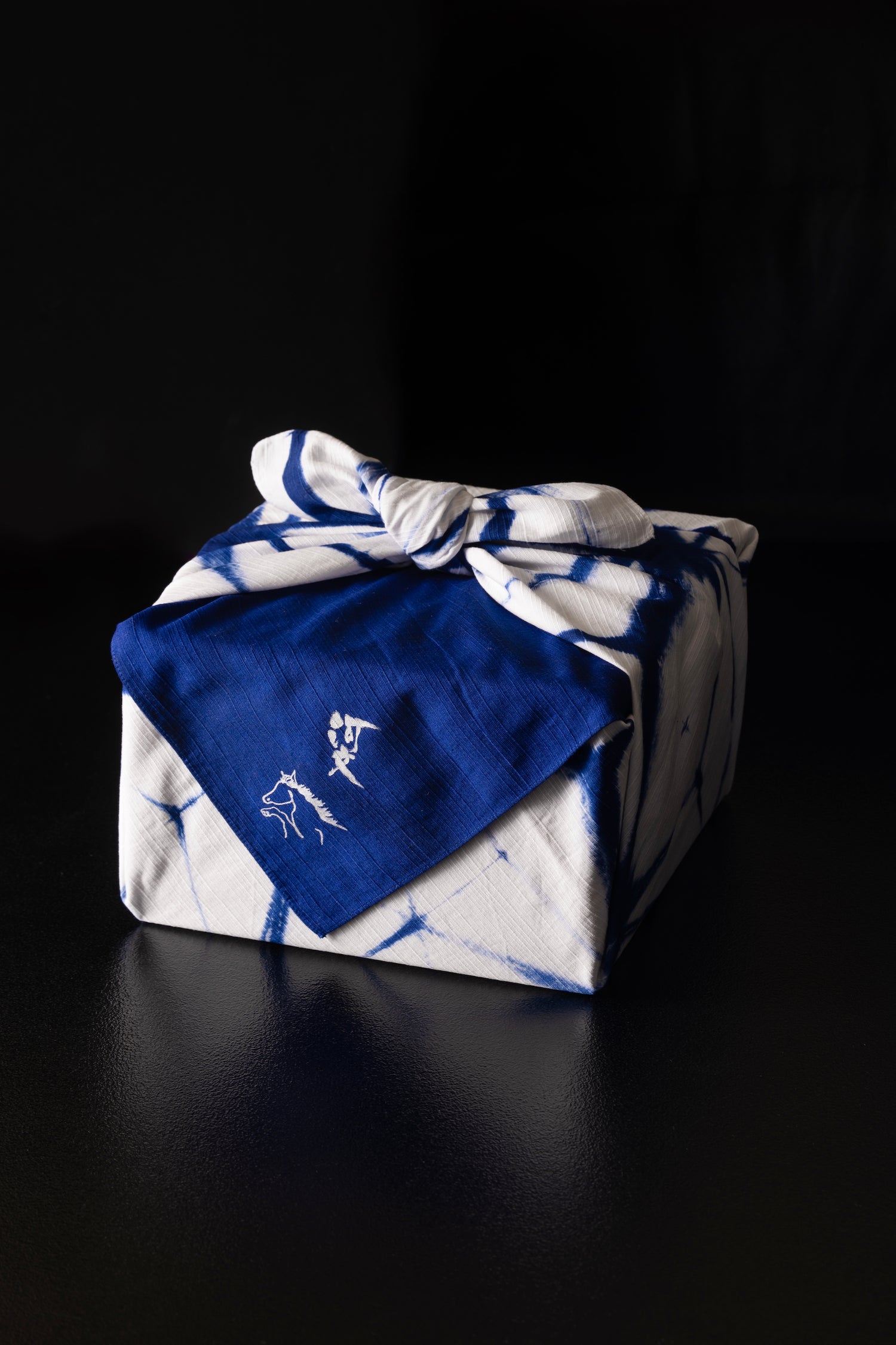 春慶塗のお重とお箸を有松絞の風呂敷に包んだおせちと合わせて、料亭河文が厳選した、甘味、お刺身、近江牛味醂焼きを別添えで一緒にお届けいたします。